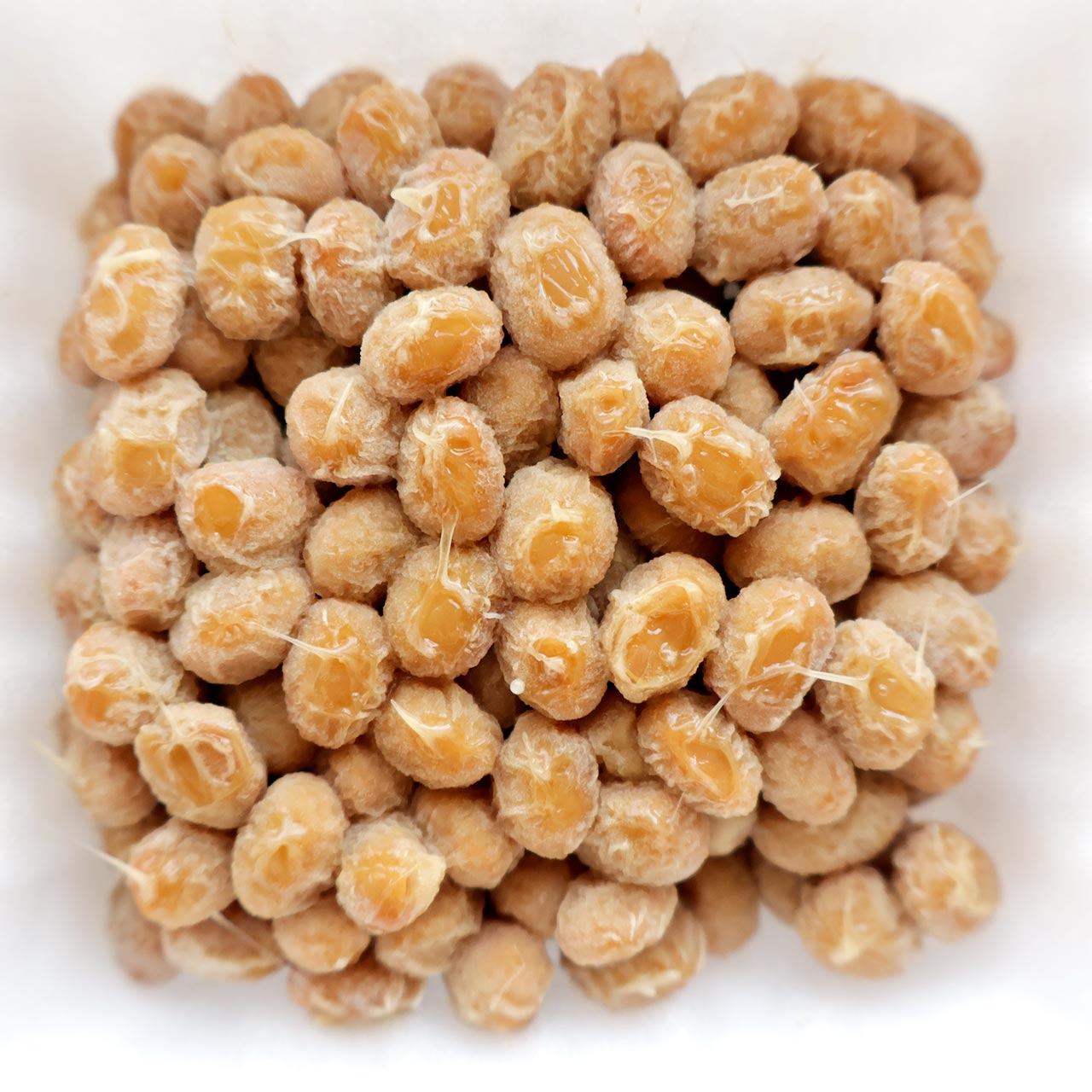 豆;小粒(長径9-10ミリ)で程よい硬さ。なめらかで、歯ごたえもっちり。