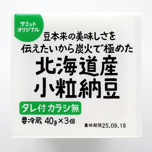 | 北海道の北竜 北竜地方の黒千石を使用 | 100%北海道大粒 確かに歯ごたえもっちリ | 北海道産小粒納豆 サミットオリジナル商品 | 明太子納豆 やまやとのダブルブランド |