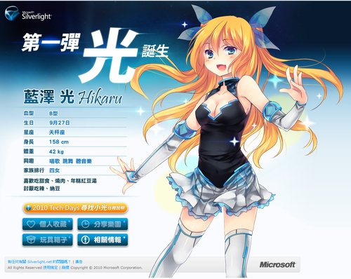 Microsoft台湾によるMicrosoft Silverlightの公式擬人化キャラクター。