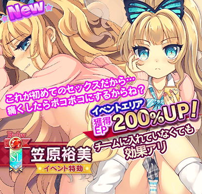 | ・イベント「不思議な玉は大いなる秘宝!?セラフィナ学園文化祭2015」の特効えろモン ・獲得EP200%up |