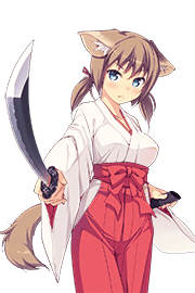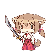 悪いものから神聖な場所をマモル狛犬になりたい犬娘。自分はいつか最強の狛犬になれる、と信じて疑わない。 アルバイトとして巫女になってすぐ、悪いものと戦うために、と刀を購入した。しかし模造刀なので斬れない。 仕事ぶりはとても真面目で、言いつけをきちんと守るし丁寧。頑張って動く姿がかわいらしくて、 産廃客からはたくさんお菓子をもらっている。 |