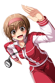 運動大好き女の子。勉強はからっきしだが、運動楽しいから問題ない。 貧乏で、 私服はジャージのみ。でも動きやすいから問題ない。胸もない。でも動きやすいから問題ない。 運動は運動でも、水恐怖症のため水泳は苦手。 |