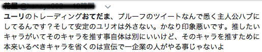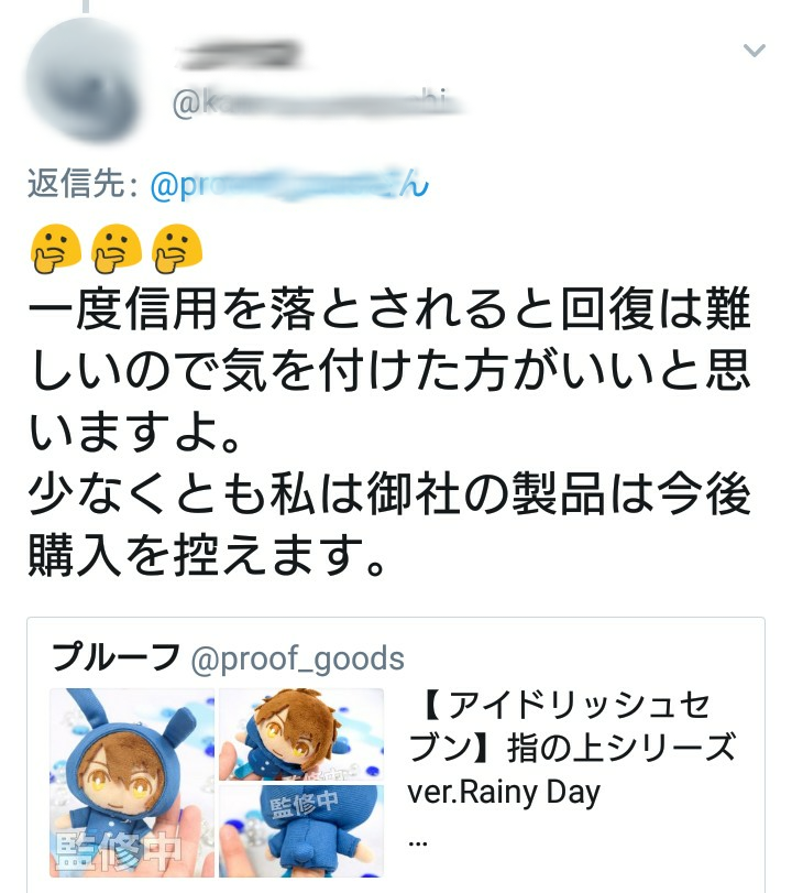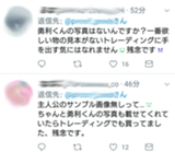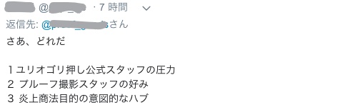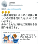 ▲メーカーのツイートにぶら下がる過激派。中には直近(2月25日)にイベントを控えた同人作家もいる。あまりにも堂々とアカウント名にスペースNo.をつけているので、もしかしたら副垢と間違えてしまったのかも知れない。