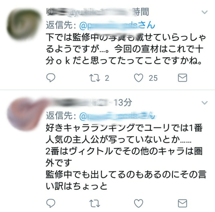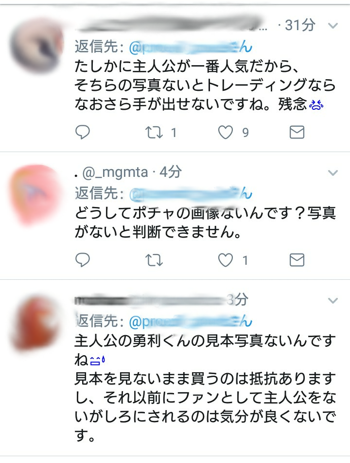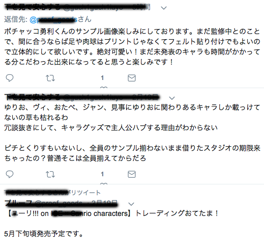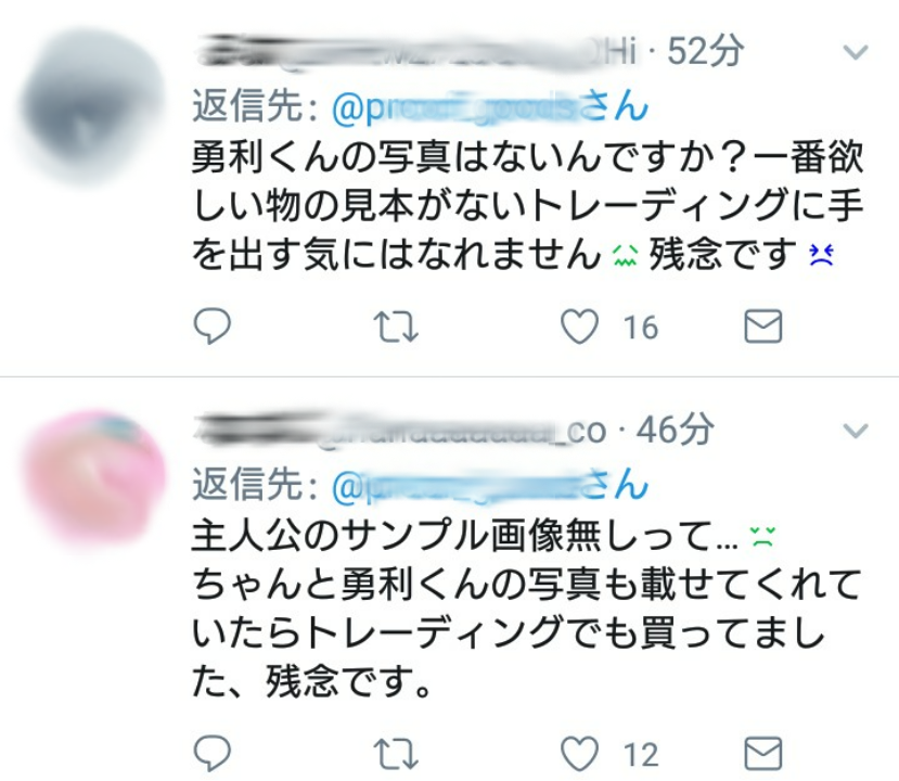 メーカーがツイートに上げた商品写真の中には勇利のキャラクターが入っていなかった。(これについては後程メーカーから説明がある)