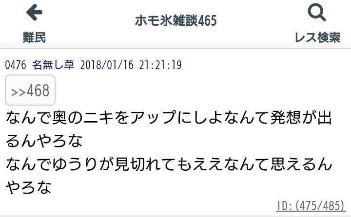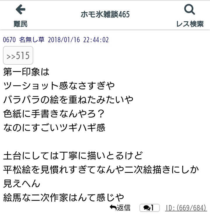呆れたことに、「過激派スレをヲチているヲチ民が原案のスパダリヴィクトルを嫌がっている」という頓珍漢な意見が出始め、挙げ句の果て、ヲチ民が勝手に次のスレッドを立てに来るから気をつけろ!と被害妄想に陥っていく。なぜ認められない原案の絵を自分たちの側に位置づけるのかわからないが、要するに敵対者にマウントを取るための材料にしたいのだろう。最後には「原案は同人作家なら島中の小手程度の画力」と貶しているが、「公式」と「同人」を比べる言動から、過激派が普段何をファン心理の拠り所にしているのかが如実に知れようというものだ。