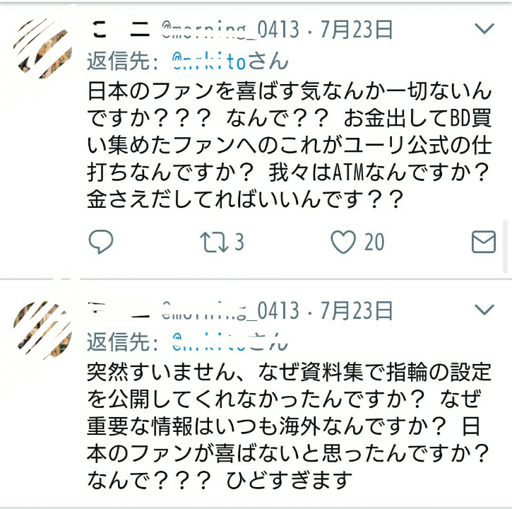 主に5ちゃんねる(アニメ2板・難民板・数字板)にて ユーリ!!! on ice の公式関係者への凸撃を奨励し、関係企業や制作会社に向けメールや電話を繰り返す一部過激派。彼女らのこれまでの言動・行動のまとめ 詳しくはトップページを参照してください。Extremists are those who are attacking official affiliates of "Yuri !!! on ICE" by Twitter's reply and e-mail.Please read about "top page", "background", "official is wrong?" about them.