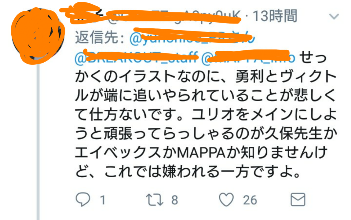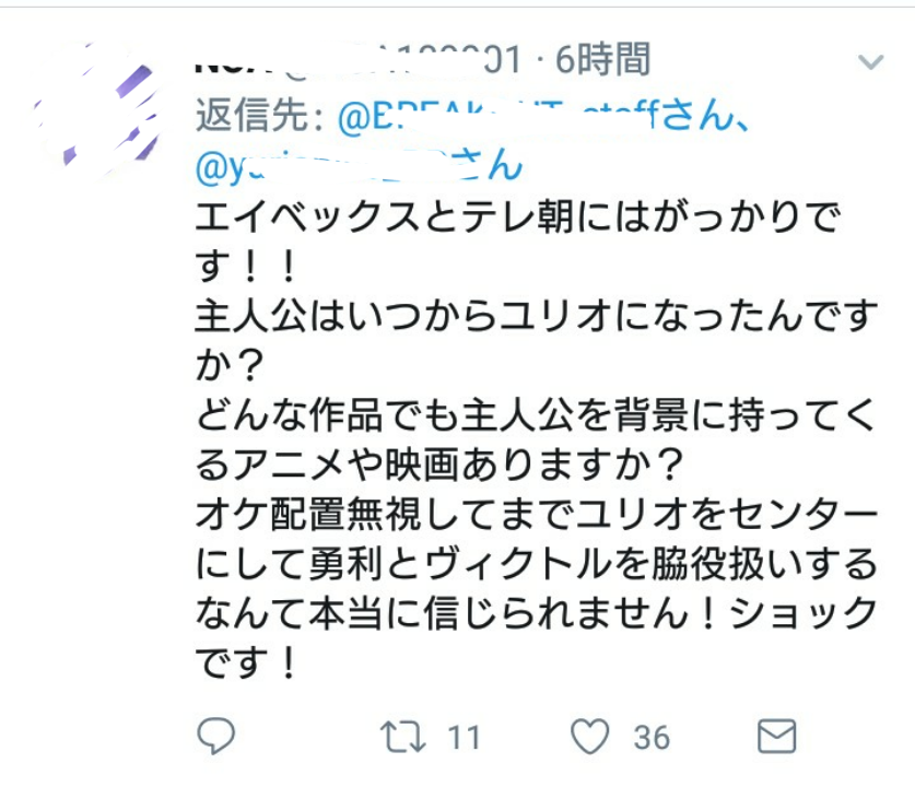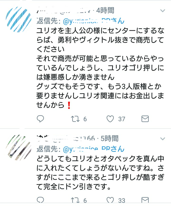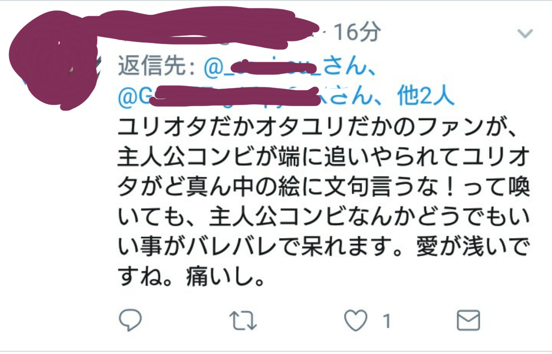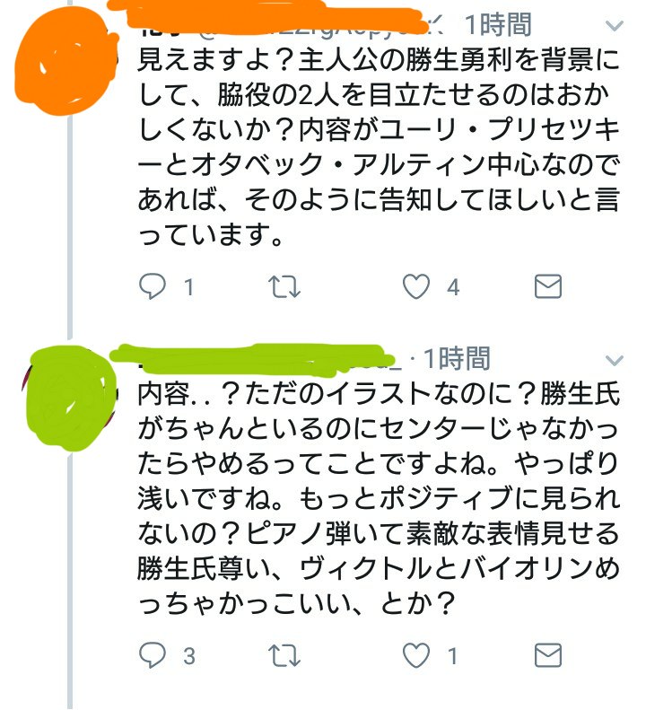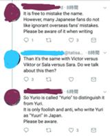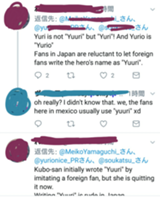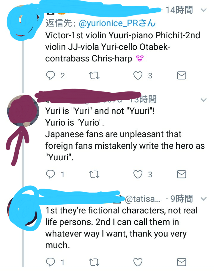 ▲海外ファンの「Yuuri」表記に怒り爆発。しつこいリプライを続ける。……このような攻撃的な脊髄反射を日本のファンの総意だと思われたくはない。