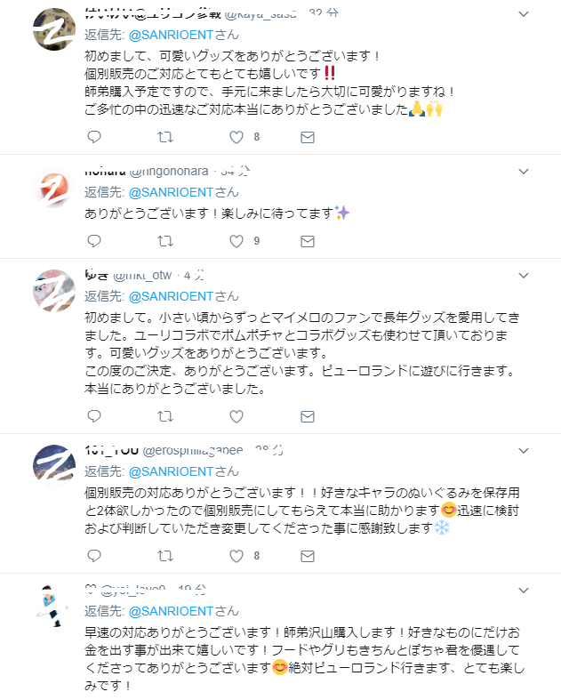 また、今回のサン○オコラボに関して言えば、本作キャラクターとコラボした企業キャラクターの既存のファンもコラボぬいぐるみの贔屓キャラが当然個別で欲しいだろう。
