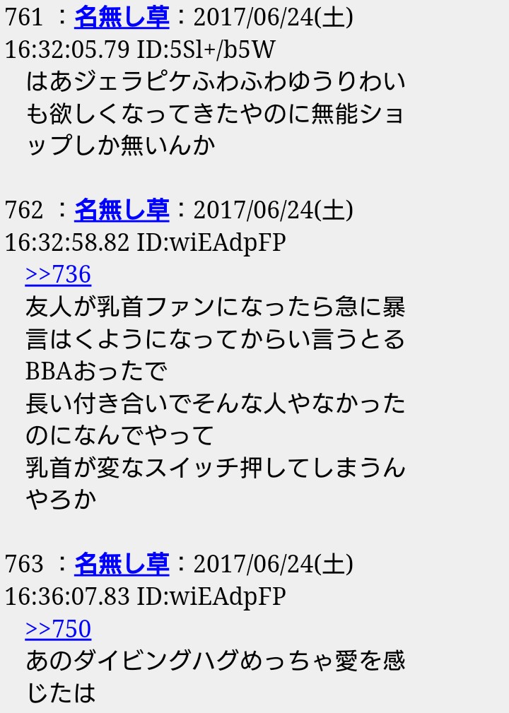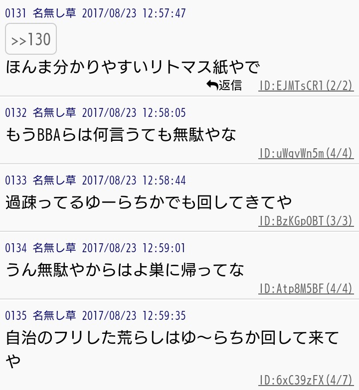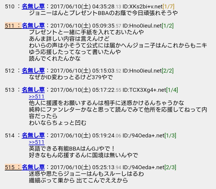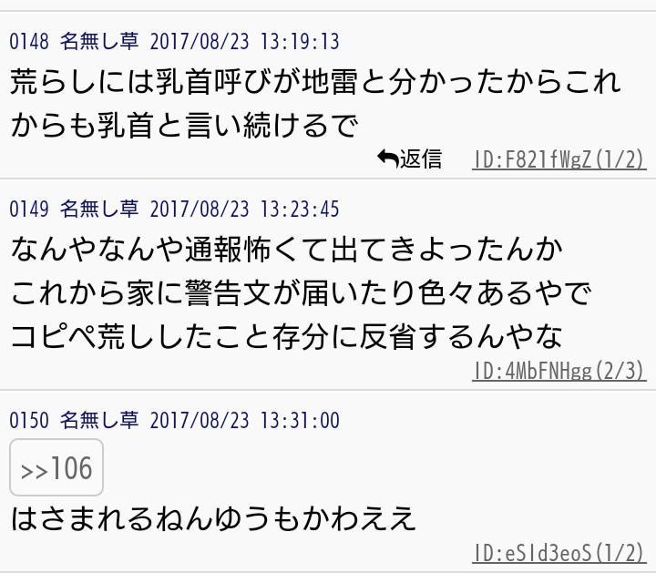 しかし、だからと言って無関係の他人に援護を要請するという大人げない行為を、雑談スレが肯定した事実は消えない。