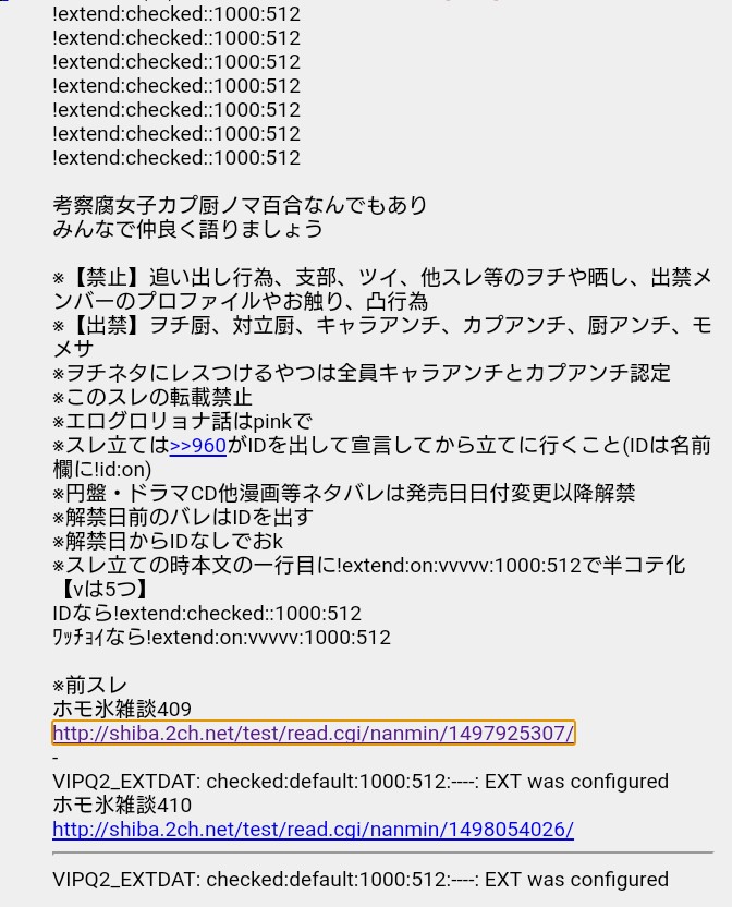 上記のような例が常態化しているにも関わらず、ホモ氷雑談スレは、未だに占拠したスレの初期のテンプレをそのまま使っている。