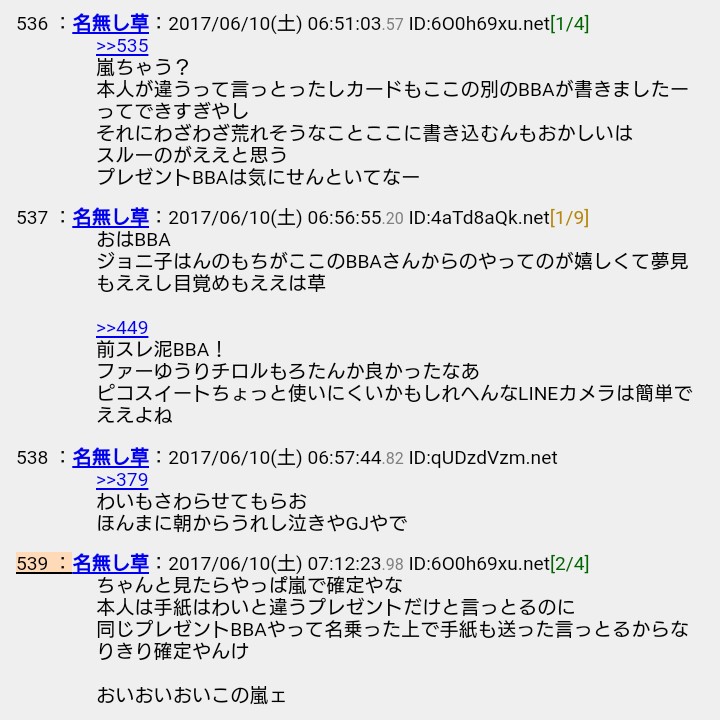 やはり迷惑行為に当たるのではないかと思い至ったスレ住人は、一気に「手紙を送った」というレスは荒らしによるものだという意見に傾いていく。