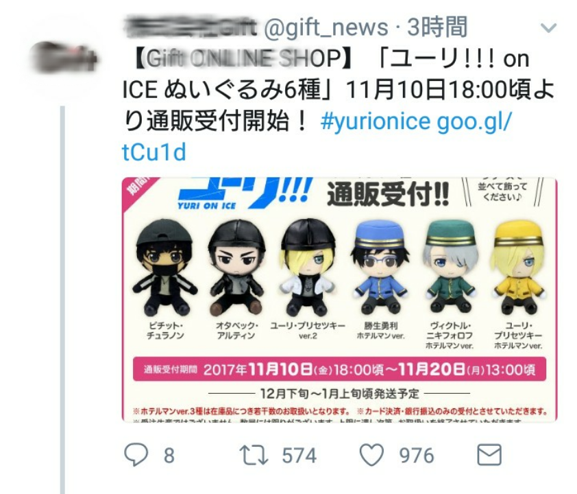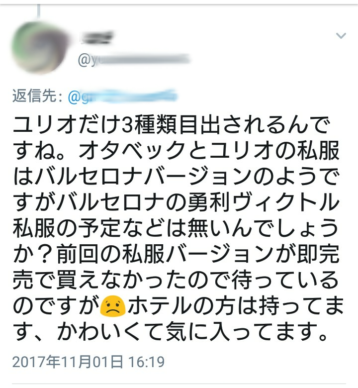ユーリ・プリセツキーのぬいぐるみが一種追加されることに、さっそく嫌みリプライ。