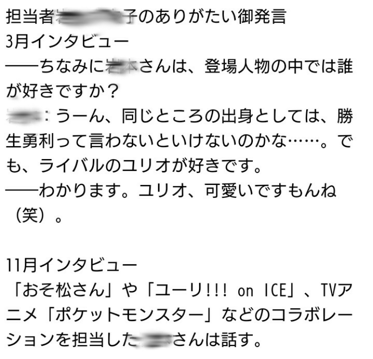 主に5ちゃんねる(アニメ2板・難民板・数字板)にて ユーリ!!! on ice の公式関係者への凸撃を奨励し、関係企業や制作会社に向けメールや電話を繰り返す一部過激派。彼女らのこれまでの言動・行動のまとめ 詳しくはトップページを参照してください。Extremists are those who are attacking official affiliates of "Yuri !!! on ICE" by Twitter's reply and e-mail.Please read about "top page", "background", "official is wrong?" about them.