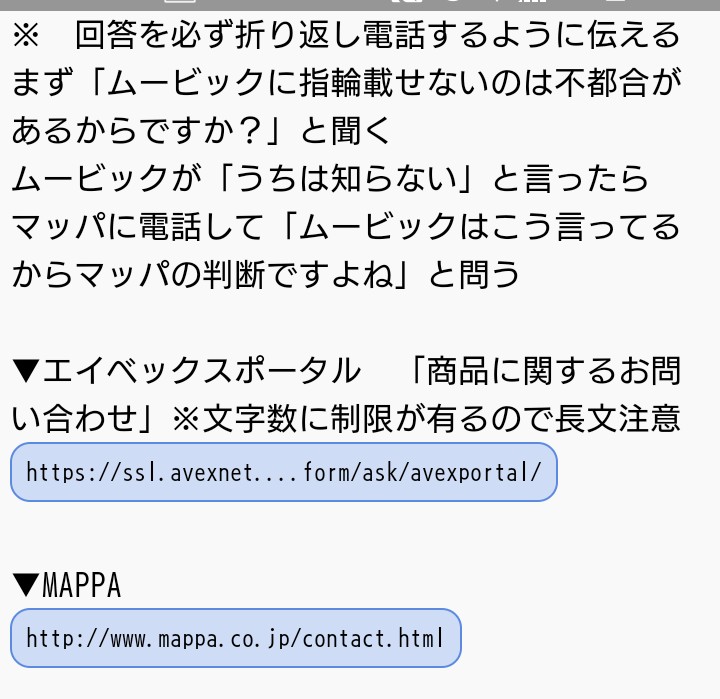 公式関連企業の凸メール先とメールの書き方指南をスレ内に貼っている。(画像参照)