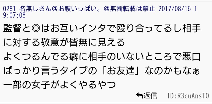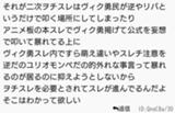 アニメ2で他スレのレスを貼り付けたもの。同人界隈で自分たちと相容れないカップリングを追い込み、追い出す一部「ヴィク勇」に異を唱えるレスを他スレから引用・添付。確かに過激派はリバや逆CPを目の敵にし難癖をつけて追い出しにかかる。(難民板の中には「作風叩きあり」をテンプレに加えている同人ヲチスレも存在する。(【二次創作を巡るトラブル】注意喚起/作風叩きありのヲチスレ参照)つまり好き嫌いで難癖のつけ放題。「作風叩きあり」をテンプレにしているヲチスレは他のジャンルでは見られない)過激派が、腐女子の鉄則「自萌え他萎え」の不可侵を理解できないことは、貼り付けた人物がこの他スレのレスを「モンペの自己欺瞞」と決めつけていることからもわかる。
