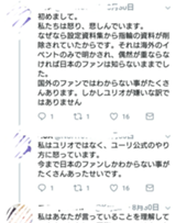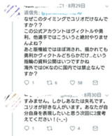 以前にも公式への不穏なリプライに異を唱えたロシア系ミックスと思しきアカウントと過激派のやり取りがあったが、(Twitterにおける嫌がらせ行為「主人公の名前のyuuri表記に関する怒り」参照)その時は過激派アカウントが、異を唱えたアカウントに差別的な暴言を吐いていた。それに比べると上記の例はまだマシなようだ。